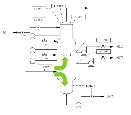 The previous CDU shutdown are passivation cleaning of the vacuum tower, to prevent the occurrence of vacuum tower of spontaneous combustion of ferrous sulfide in the construction process. The process is in shutdown steam blow after the completion of the vacuum tower of FES, passivation cleaning, removal of ferrous sulfide and other flammable substances. From the top of the pressure tower, the passivation agent is used to establish the middle cycle of the reduction of one, two, and two, respectively, and the recovery of the passivation agent at the bottom of the tower is repeated. But in effect, due to the production process by three fillers and excess vapor some serious corrosion, middle liquid return distribution can not be uniform on the filler layer, no reaction to the local, thus affecting the passivation effect.