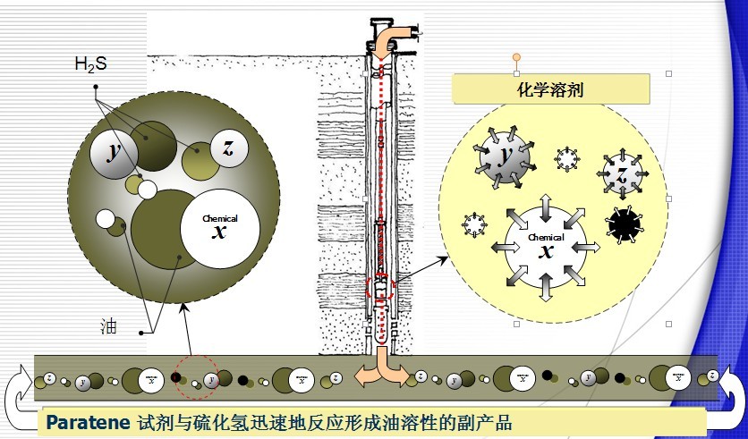 Paratene M311 is a unique hydrogen sulfide scavenger used in oil field operations to react rapidly with hydrogen sulfide to form an oil soluble by-product. The reaction is irreversible, and when PH is neutral or acidic, H2S cannot be released from the solution. Unaffected by carbon dioxide, it can work effectively even at low temperatures.